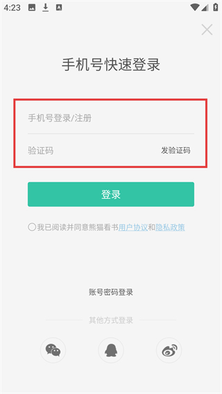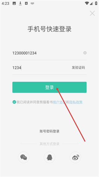 4、填写手机号与验证码,勾选协议后,点击【登录】按钮完成账号的登录操作。