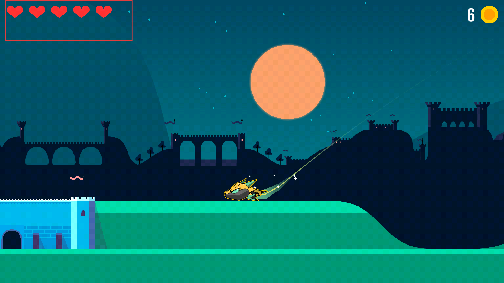 2、关注生命值(爱心数量),操控龙在城堡场景中移动,躲避敌人攻击,同时收集金币,提升游戏资源。