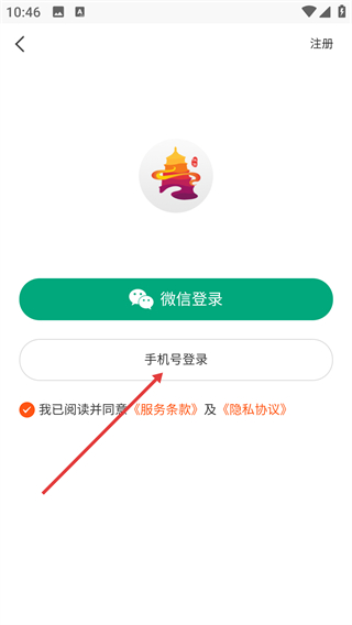 3、在登录选择界面,选择【手机号登录】(也可选择微信登录)。