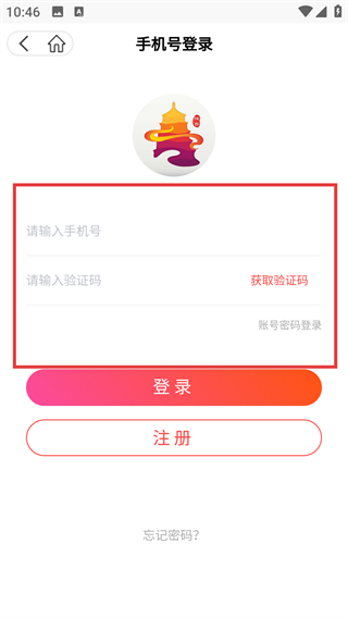 4、在手机号登录页面,输入要注册的手机号码,点击【获取验证码】,填写收到的短信验证码。