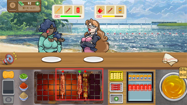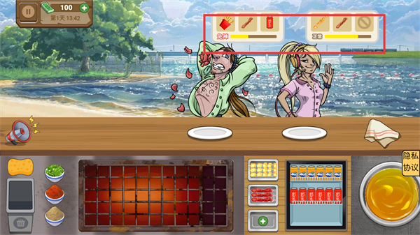 1、点击【开始游戏】,进入烧烤摊经营界面,开启烧烤摊的经营之旅。