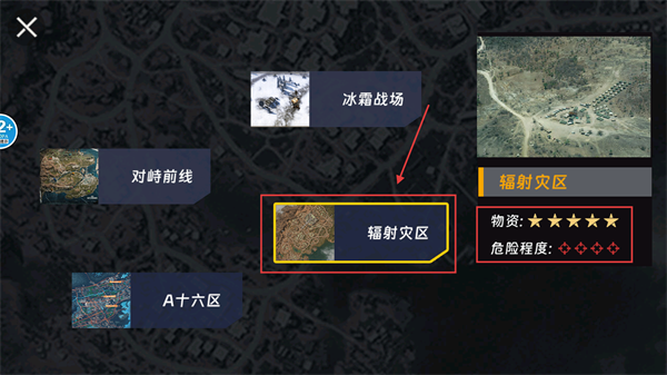 1、进入【辐射灾区】前需了解其物资星级高且危险程度高,建议提前准备好装备再前往该区域探索。