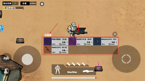 3、打开【武器箱】获取【PPQ手枪】-【SKS半自动步枪】-【GROZA突击步枪】,选择强力武器增强战力。