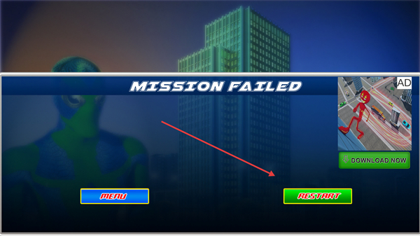 4、若任务失败,点击【RESTART】重新开始挑战,总结战斗经验。
