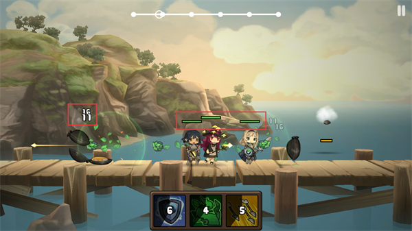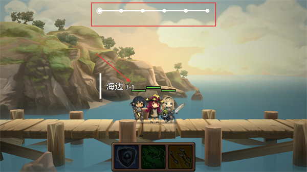 1、在“海边3-1”关卡中,关注角色的生命值和关卡进度条,合理规划战斗策略,推进关卡进程。
