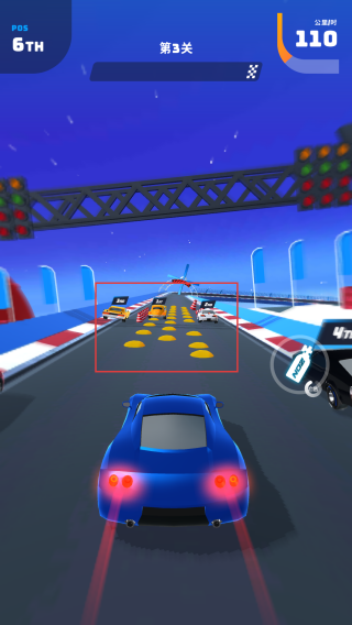 2、在赛道上,躲避路面上的障碍,避让其他车辆,助力提升当前比赛的排名。