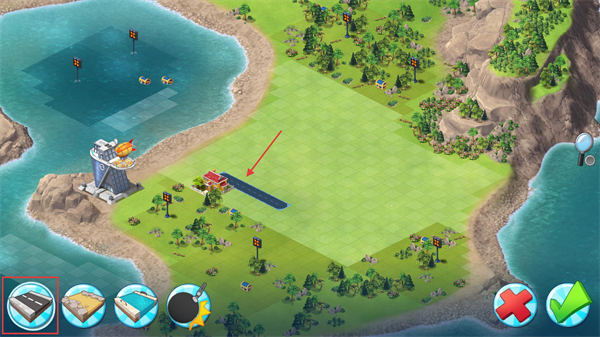3、规划城市优先铺设道路网络,选【道路】地块连接各区域,合理布局助后续设施高效连接,确认后点击绿色按钮完成建设。