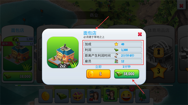 4、建造【面包店】等商业设施需选草地的地块,它能提供1300利润与40星加成,靠近住宅布局可有效提升居民幸福指数。
