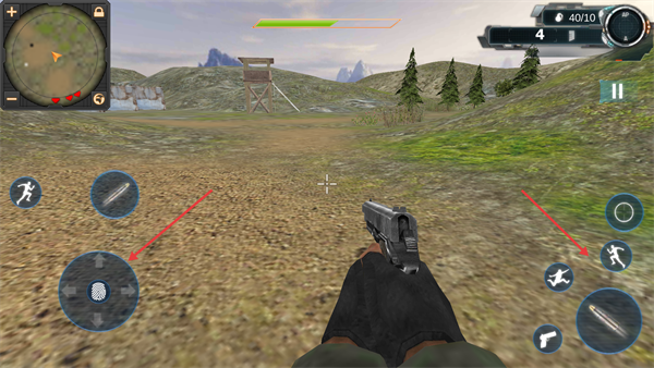 2、进入关卡后,熟悉界面中【移动】【换弹】等功能按钮,把控战斗节奏。