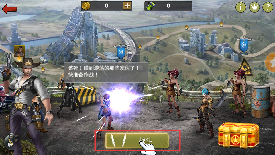 1、遇到游荡敌人时,点击【战斗】按钮,带领队伍迎战丧尸,开启战斗流程。