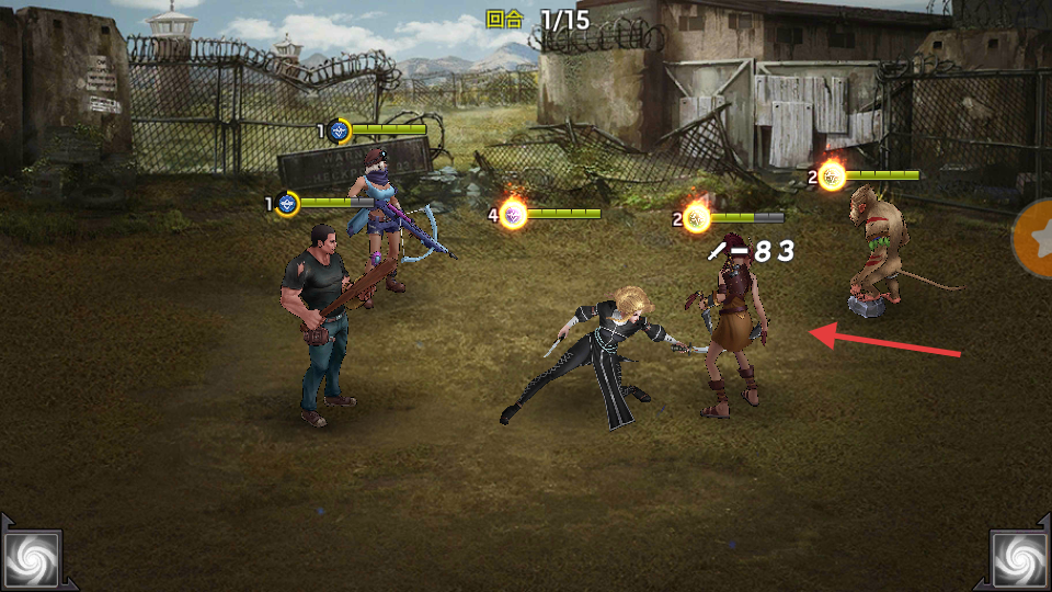 3、战斗中留意回合数【1/15】,操控角色优先攻击敌方,利用兵种技能打击丧尸类敌人。