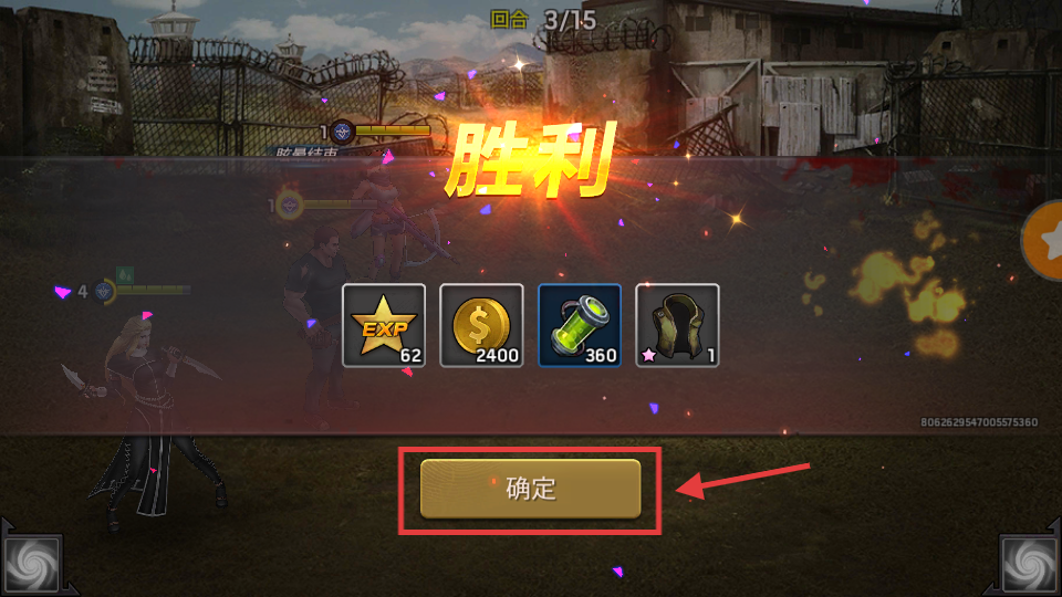 4、战斗胜利后,点击【确定】按钮,领取经验、金币、资源和装备,用于提升实力。