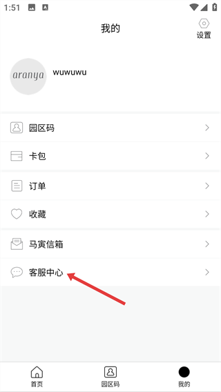 2、在阿那亚【我的页面】,我们点击【客服中心】选项,进入客服界面呀。