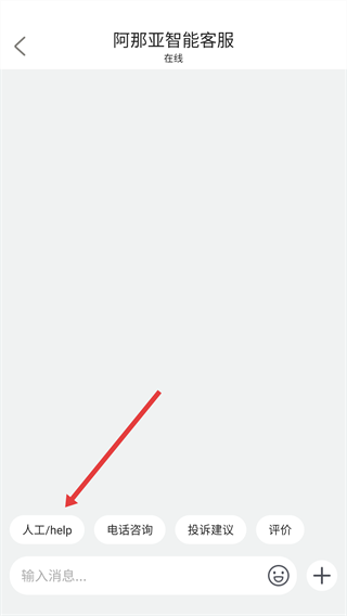 3、在智能客服页面,我们点击【人工/help】按钮,进入客服组选择页哦。