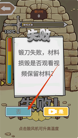 4、若锻刀失败,可选择是否观看视频保留材料,总结经验后重新尝试锻刀。