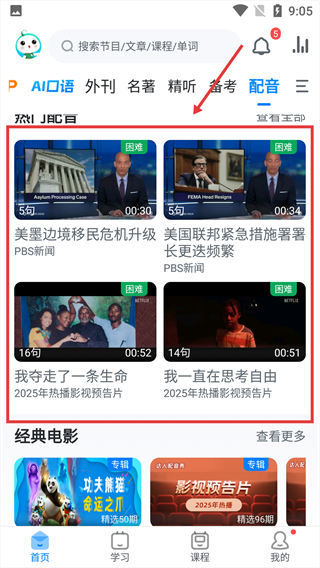 4、有多种优质的英语节目可以选择,还可以开启翻译模式进行互动,更好的学习英语。