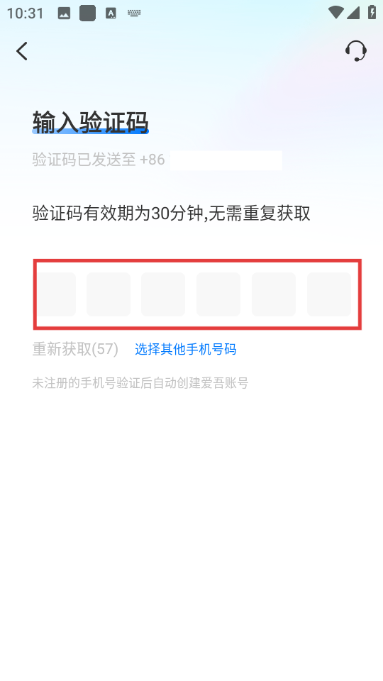 4、在输入验证码页面,将收到的验证码依次输入到对应方框中,完成登录操作。