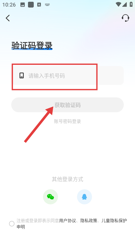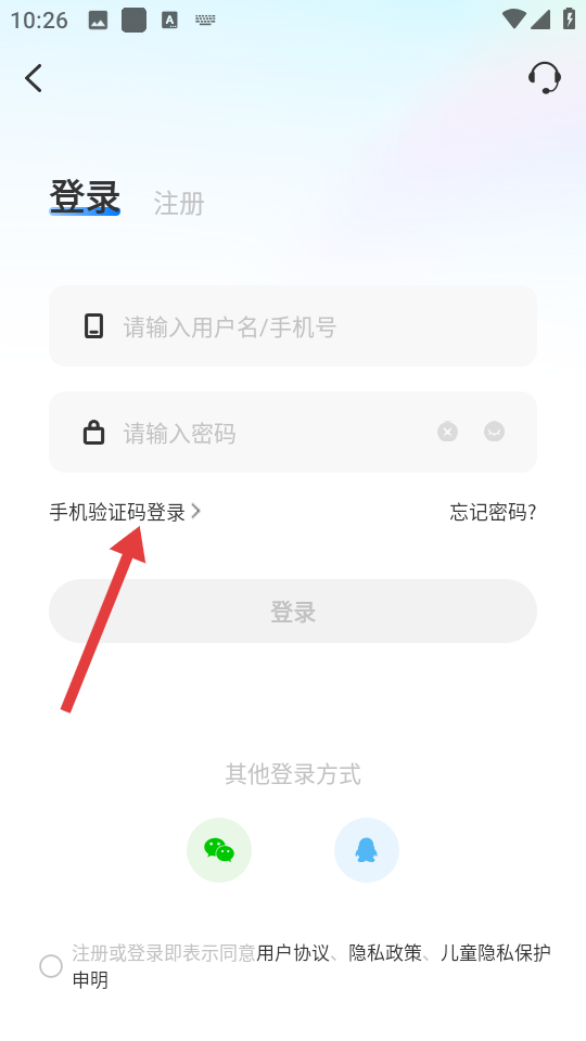 2、在登录页面,点击【手机验证码登录】选项,进入验证码登录页面。