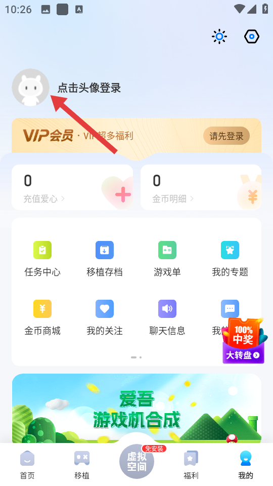 1、在【我的】页面,点击【点击头像登录】区域,进入登录相关页面。