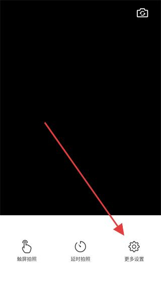 2、在拍摄界面底部,点击【更多设置】选项,进入应用的设置页面。