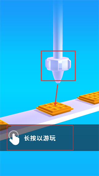 2、制作华夫饼时,长按屏幕操控制作设备,精准在华夫饼上进行制作,提升美食完成度。