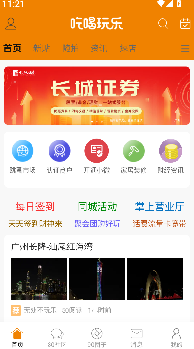 2、设有攻略与打卡专区,收录本地游玩、美食与出行指南,助力规划日常行程。