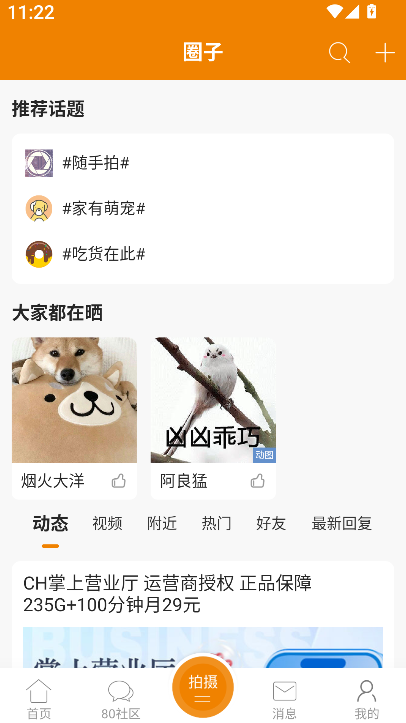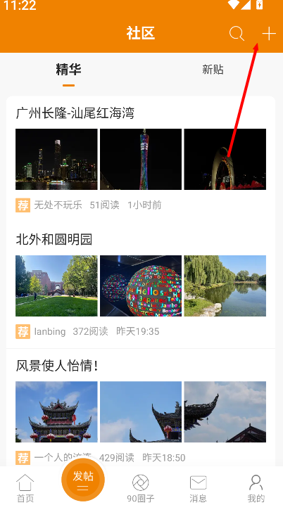 3、进入“90圈子”,可拍摄并上传符合推荐话题的内容,查看他人晒出的精彩瞬间,参与更多有趣的圈内讨论。