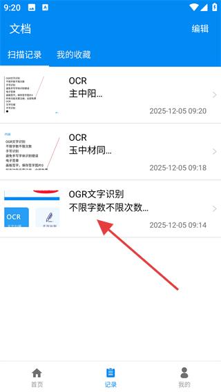 2、进入文档列表页,选择需打印的OCR识别记录条目。