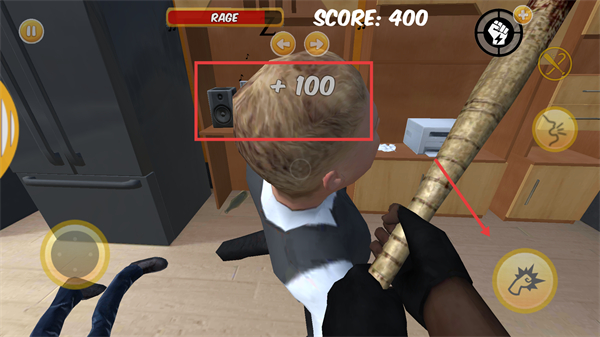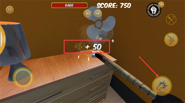 2、利用技能按钮(如攻击技能)增强破坏效果,提升“RAGE”值的同时,增加单次破坏的分数获取。