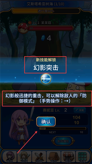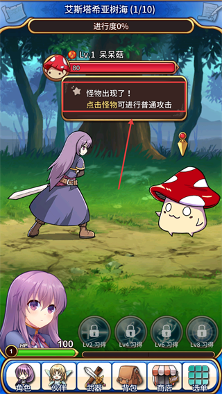 2、遇到【Lv.1-呆呆菇】时点击怪物进行普通攻击,击败它可推进树海区域探索进度。