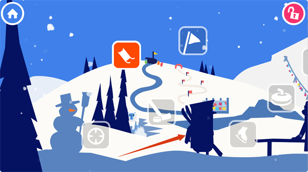 1、游戏开始时,选择带有雪橇图标的游戏模式,进入雪地滑行的游戏场景。