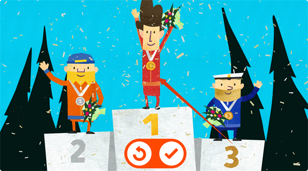4、完成滑行后,若获得第一名,将登上领奖台,收获冠军荣誉,可选择继续挑战或结束游戏。