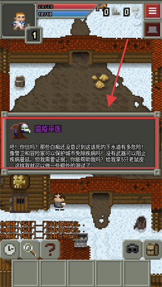 2、与瘟疫医师对话接取任务,收集5只老鼠皮可换圣水,提升在地牢中的生存与战斗续航。