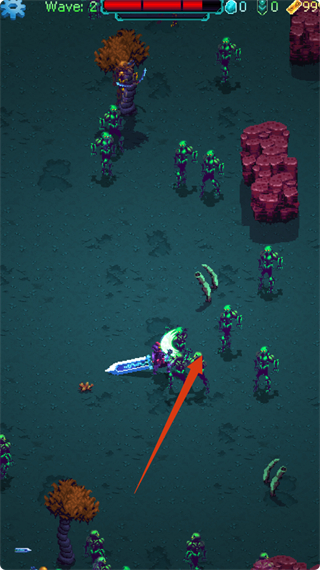 4、面对大量敌人时,使用重击技能大范围攻击,快速消灭敌人,成功抵御Wave2的敌人进攻。