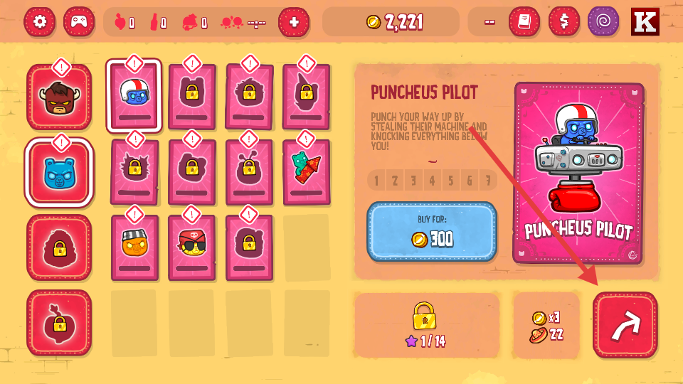 1、在商店中花费300金币购买【PuncheusPilot】道具,解锁后可在飞行中使用该机械。