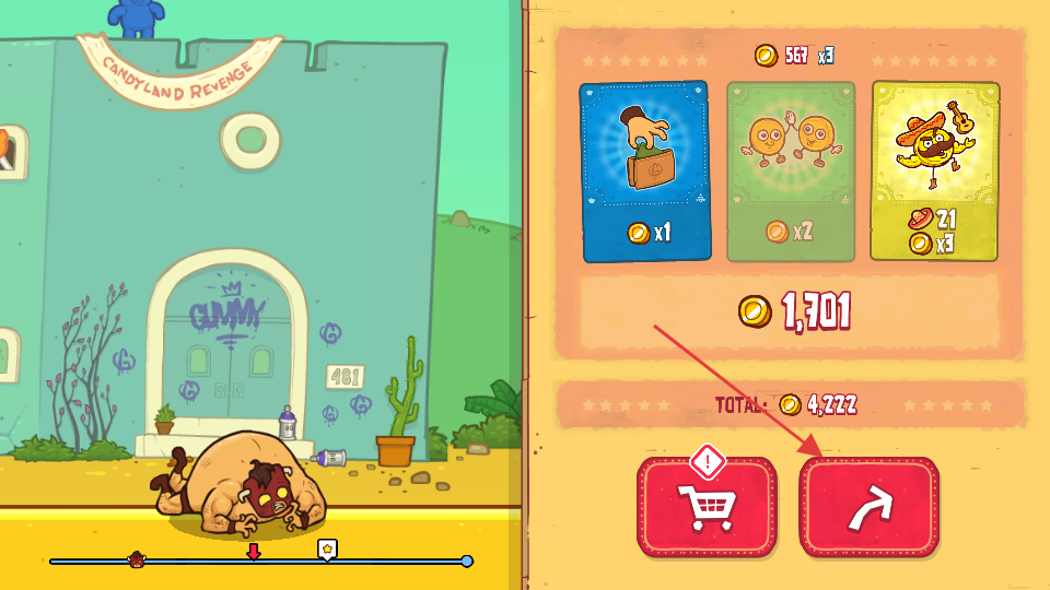 4、飞行结束后,可获得大量金币奖励,如1,301金币,点击箭头按钮继续游戏,利用奖励升级道具,助力后续冒险。