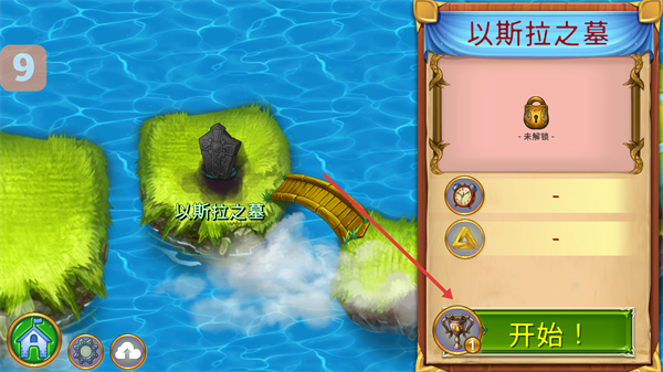 1、选择关卡(如以斯拉之墓),点击【开始!】进入冒险解谜场景。