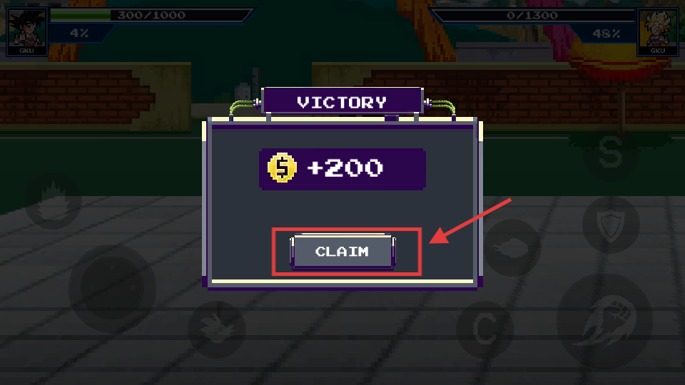 4、胜利后点击【CLAIM】按钮领取金币奖励,积累资源提升角色实力,继续准备下一场守护战斗
