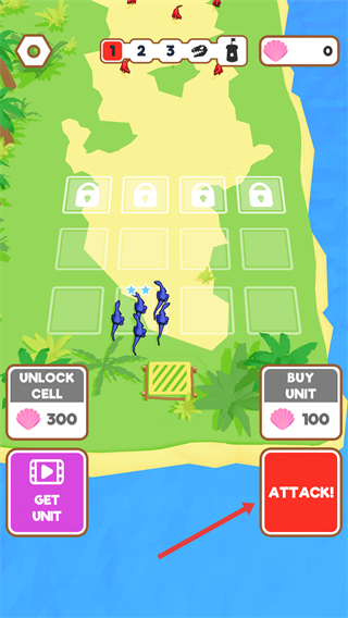 1、点击右下角【ATTACK!】按钮,指挥蓝色恐龙部队发起进攻。