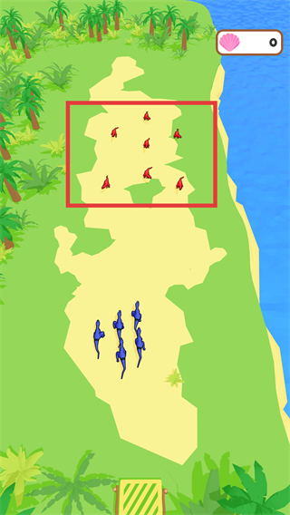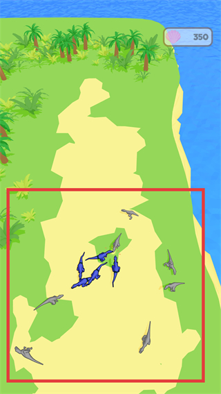 3、在红色框内的区域中,操控蓝色恐龙部队与灰色恐龙部队战斗,夺取领地。