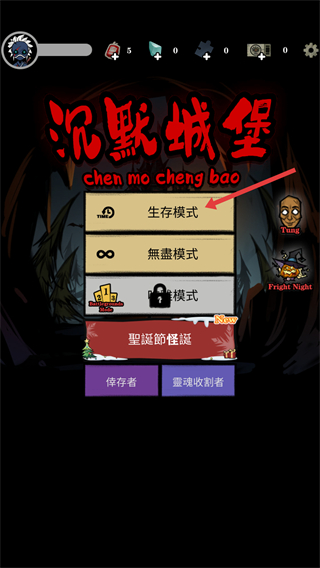 1、在游戏主界面,点击【生存模式】按钮,进入生存模式开始游戏。
