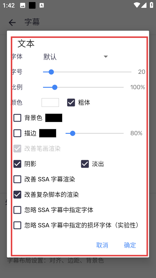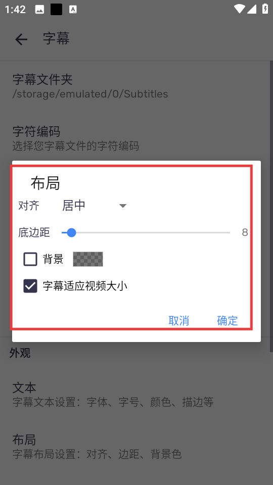4、在字幕的布局设置弹窗中,可设置【对齐】方式、【底边距】等,设置好后点击【确定】,完成字幕加载。