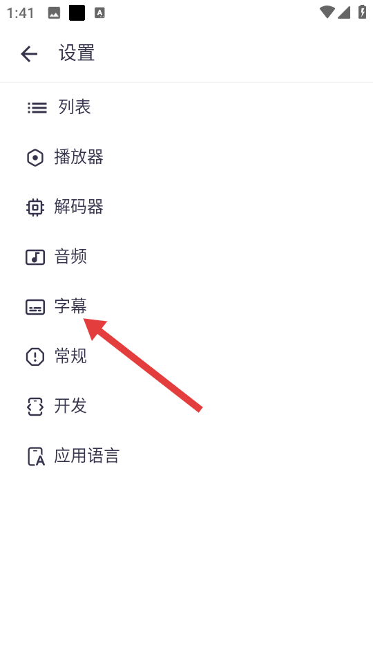 2、在设置页面,点击【字幕】,进入字幕设置页面。