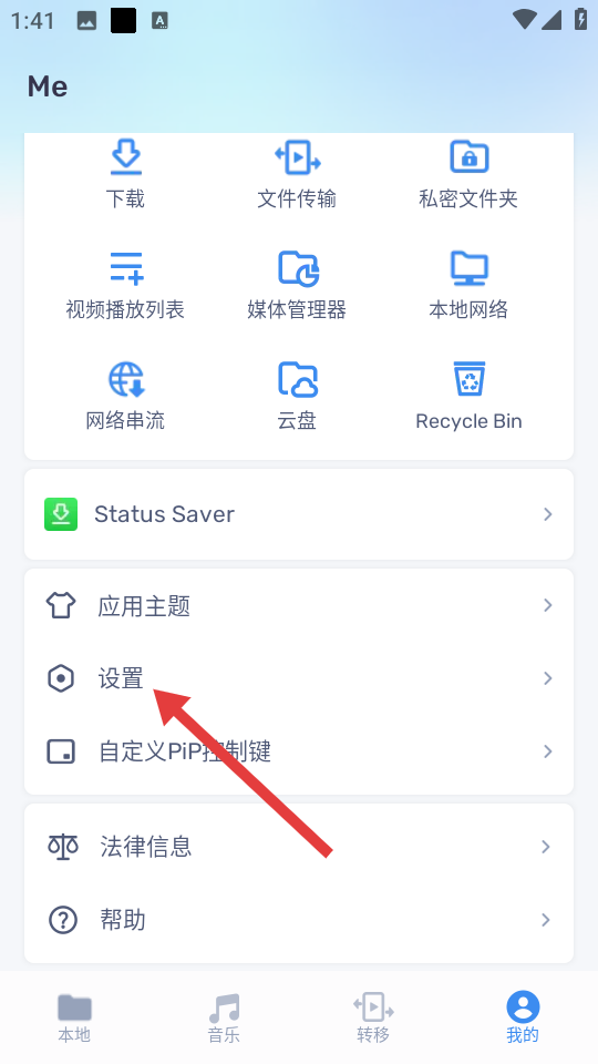 1、进入软件在【我的】页面,点击【设置】,进入设置页面。