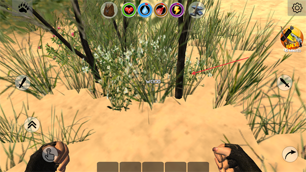 4、在野外场景采集【WOOD】资源,获取建造庇护所与工具的基础材料,助力后续生存冒险。