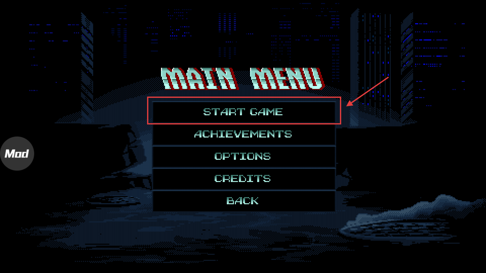 1、点击主菜单中的【STARTGAME】选项,即可进入游戏开启以暴制暴的像素射击冒险。