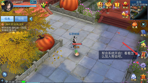 1、在游戏界面点击右侧【帮会】选项,进入帮会系统界面。