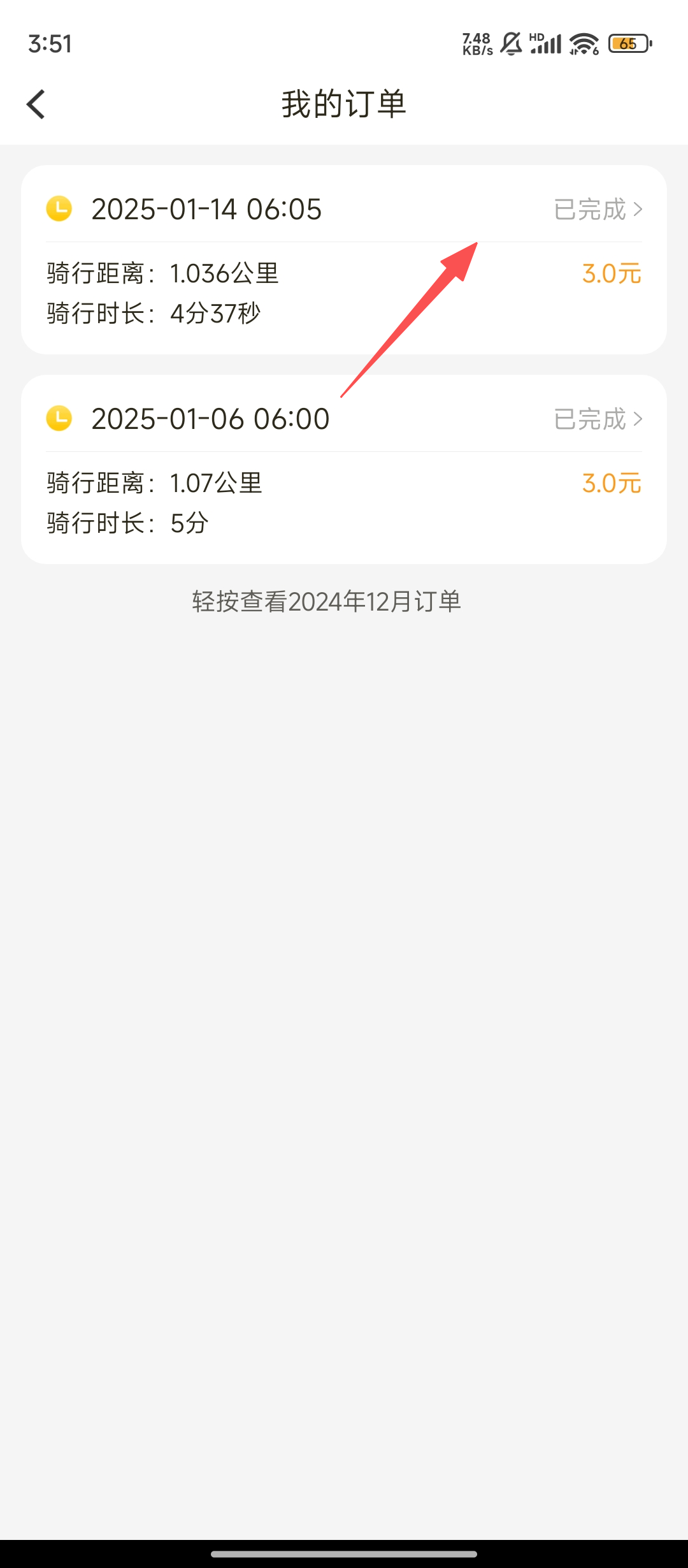 3、在【我的订单】页面,点击要查询的订单,进入行程详情页。