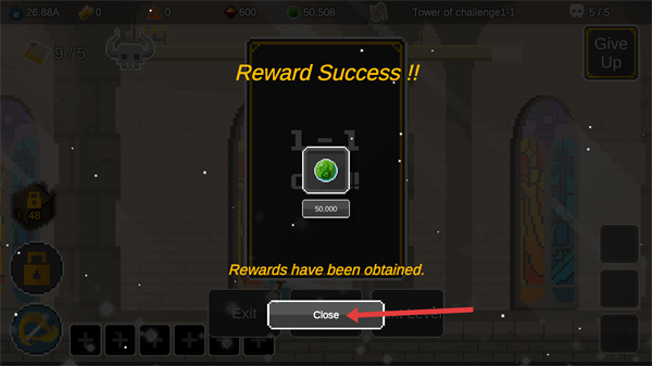 3、获得奖励后,点击【Close】按钮,关闭奖励提示界面。