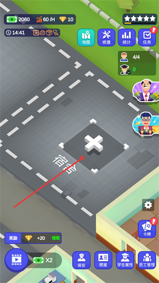 3、消耗相应资金(如建造宿舍耗费2000金币),这些设施能提升学生数量、清洁度和学生心情值,优化校园环境。